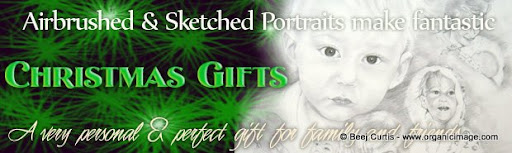 Black and white pencil drawings, coloured pencils renderings, Sepia Tone, Airbrushed Portraits (my personal favourite) or full colour Airbrushed Portraits we can do them for you - ANY size! I have painted mural portraits on 30ft x 16ft canvas so don't be afraid to ask for something you may think is on the LARGE size ;)We are taking orders now for Xmas but please do not leave it too long if you want to stay within the Christmas 08 deadline. Click HERE to visit the website and place an order securely on line for an airbrushed portrait. We ship WorldWide so if you are on the other side of the world, you can own one of our pieces of art.